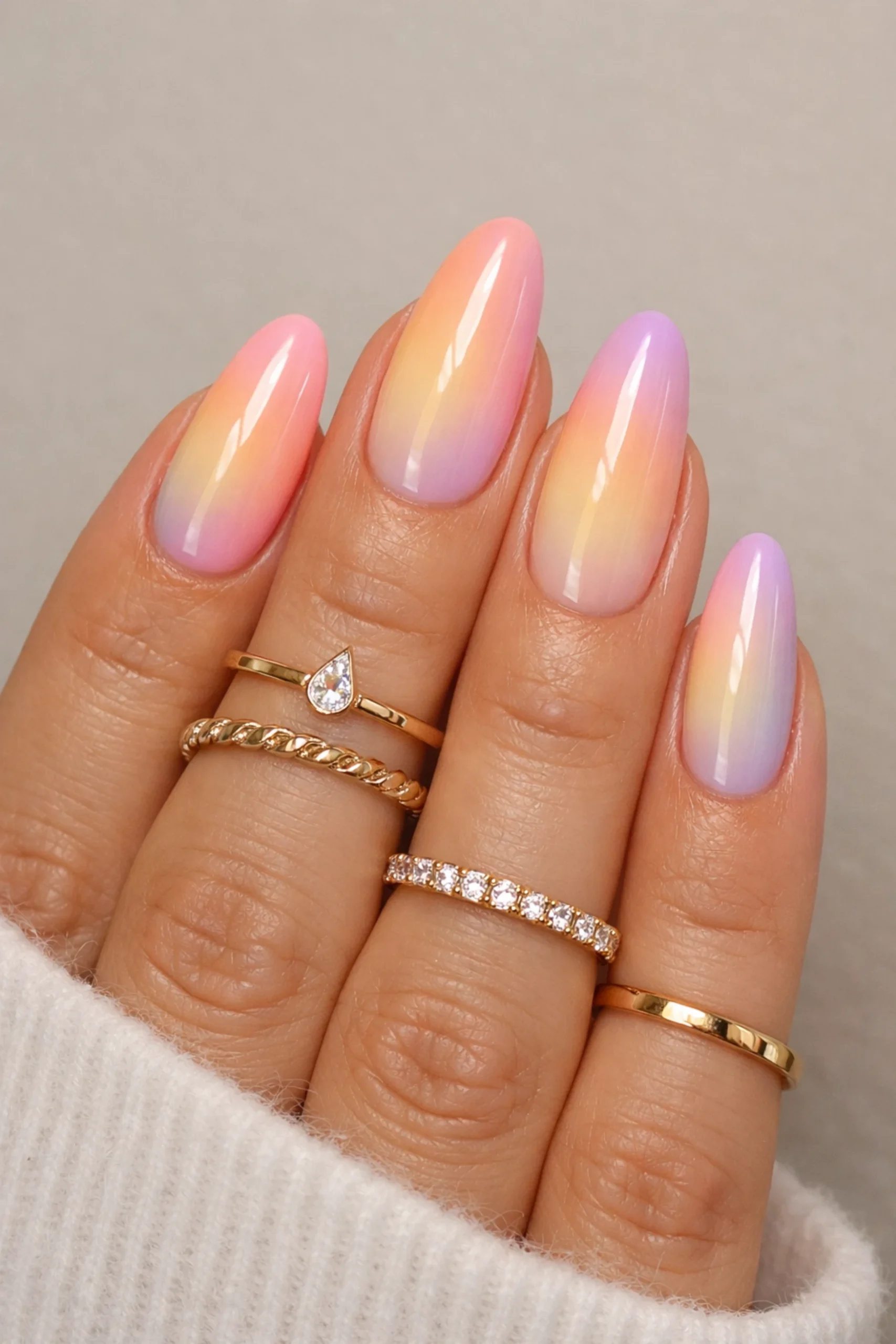 Pastel ombré creates a soft gradient look.